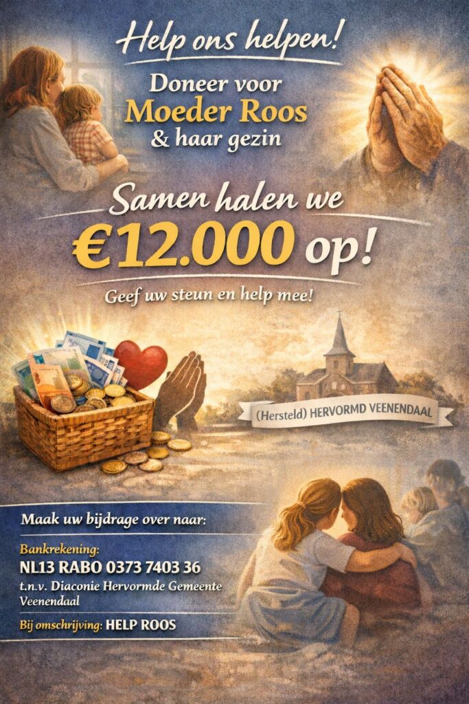 Willem Leeflang (vrijwilliger voedselbank) en Janny Westerink (Julianakerk) hebben deze hulpvraag aangenomen, in het geloof dat God mensen op je pad brengt en in vertrouwen dat Hij voor ons uitgaat.  Uiteindelijk hebben we een rooster kunnen maken van vrijwilligers uit onze kerken en een deel met Stichting Hups. De 12.000 euro is nodig om Stichting Hups te betalen. Zij hebben een iemand kunnen vinden die drie dagen 24/7, 6 weken lang in het gezin kan zijn. U begrijpt dat dit voor rust en continuïteit in het gezin heel belangrijk. Daarom zijn we erg dankbaar met deze mogelijkheid.